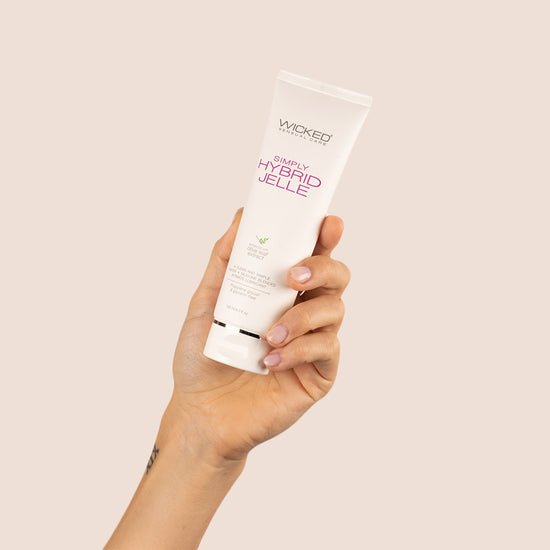 Wicked Sensual Care Simply Hybrid Jelle Lubricant s a clean, premium hybrid lubricant that is rich and ultra thick, with extra body for added cushion and unsurpassed glide. This lubricant is a perfectly blended hybrid formula that provides added glide and pleasure for all types of play. When you want a clean lube…do it simply.