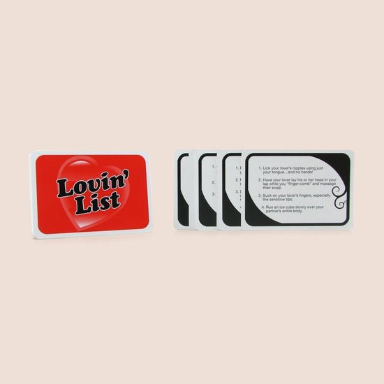 When either player has reached 50 points, they'll pick a Lovin' List card, which spells out sexy scenarios and situations.