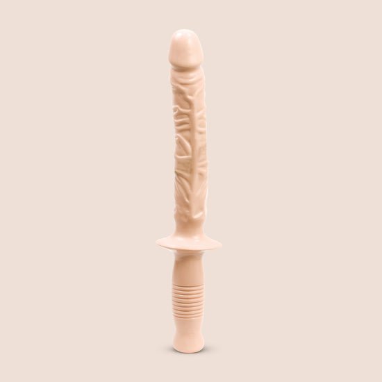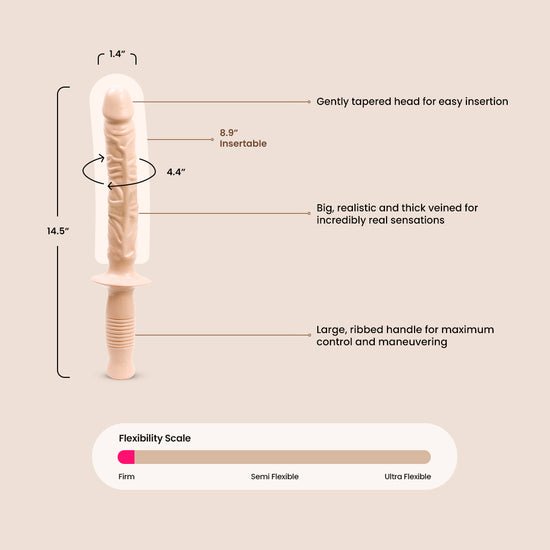 At the base of this super sized dildo is a large, ribbed handle that allows you or your partner a precise, sturdy grip and perfect control!