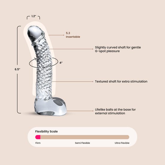 This pleasure wand has a smooth, rounded tip for easy insertion and adds more excitement to your experience. With a realistic c design, this glass dildo delivers intimate sensations for you to enjoy.