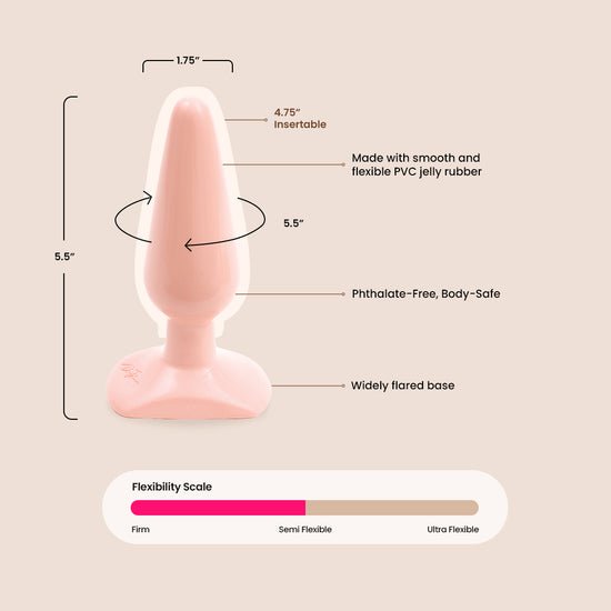 The Classic Butt Plug is a satisfying 4 1/2 inches of insertable length, in a very smooth and flexible PVC jelly rubber that moves with you.