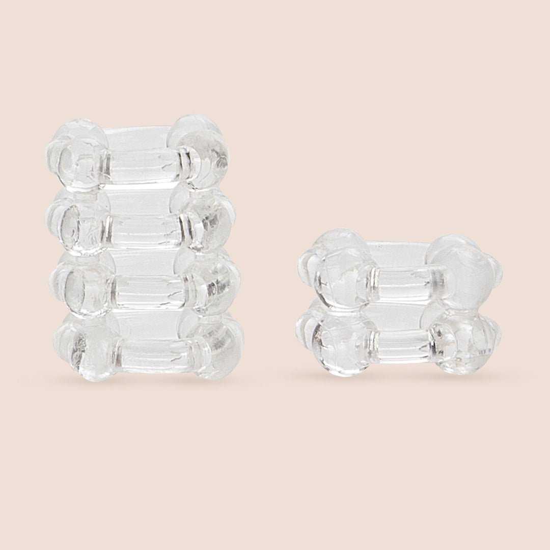 These soft, stretchy c rings each have unique styling to thrill you, one is double tiered the other four-tiered to grip you tight and secure.