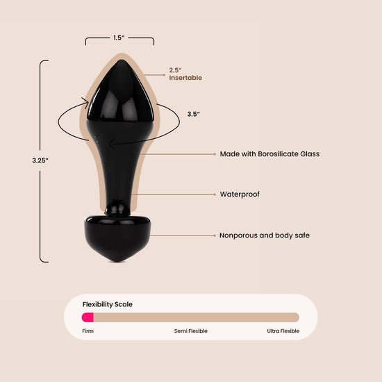 This luxurious glass plug is perfect for anal beginners, featuring a tapered tip to ease insertion, a bulb that provides extra sensation, and a narrow neck that allows your muscles to wrap around and hold it in. The ergonomic design of the base ensures it wont slip too far inside while still fitting comfortably between your cheeks. The hypoallergenic glass is nonporous and body safe, and when cared for properly, is designed to last a lifetime. Run the plug under warm water or place it in the microwave to heat things up. Chill it under cold water or put it in the freezer for a cool sensation.