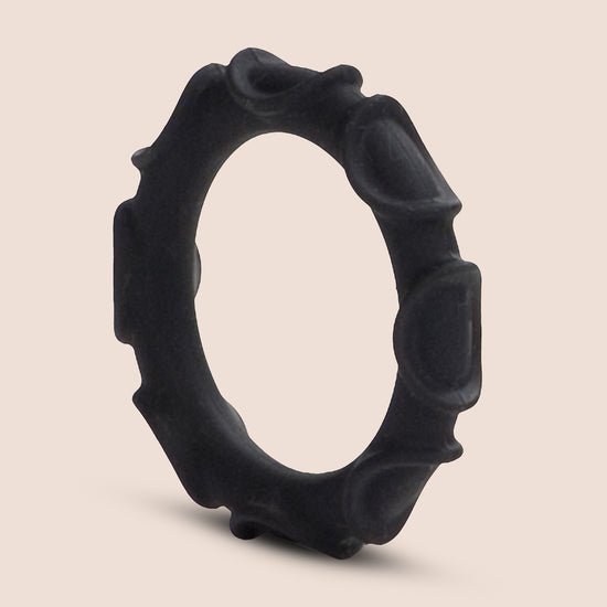 Made from pure silicone that creates a firm grip while warming to body temperature for a natural feel, Adonis Silicone Rings are sturdy, comfortable and ultra effective. C rings work by keeping blood in the penis once its erect, they can also help with endurance, since the slightly constricted sensation helps to keep the wearer under control. For whoever's on the receiving end, a ring can provide extra stimulation to the clit or perineum, since it'll add a little more surface area and extra texture. The Atlas version of the Adonis ring has a pattern or little raised cups overtop, it's extra stretchy and super smooth, plus, as mentioned, it'll warm to body temperature with use, making it feel natural for both partners. The high end pure silicone is extremely hygienic, with a nonporous surface that's very easy to clean and sterilize; silicone is also hypoallergenic and body friendly, perfect for anyone with sensitive skin. Use a good quality water based lube if needed with the Adonis rings to keep the material strong. Fits most.