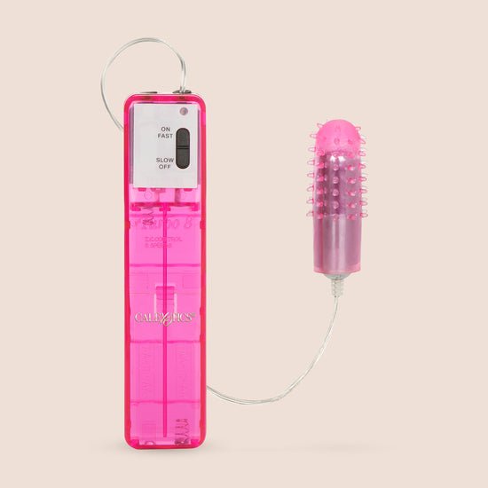 Eight levels of powerful stimulation delivered by an Action Arouser! The pink bullet has an exquisitely textured, soft, supple, removable Silicone clear sleeve. The easy touch control pad with LED display has a contoured case for ergonomic versatility. Uses 4 AA size batteries, not included. The power behind this Action Arouser is indescribable... it will take your breath away!