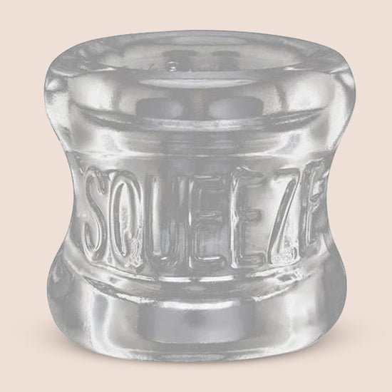 Ready to give your low-hangers a little extra oomph? Look no further than Squeeze! This thick, blubbery ball stretcher is designed to mold to your junk like a second skin, with squishy padding on each end to push your heavy nuts down and away for a stretch that'll have you shooting for the stars. The curved design of the inner chamber gives you a tight grip without strangling the life out of your boys. Think of it like a gentle tug on your ball bag.
