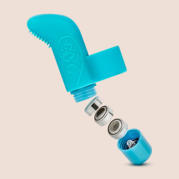 This takes getting the finger to a new level! Use your fingers in more ways than one with this fabulous Finger Vibe by Blush Novelties. The one-size-fits-all, removable textured sleeve is made of pure silicone and features several soft ticklers located at the tip to provide you with enhanced stimulation. Choose from 7 unique vibrating functions with the push of a button, then tickle and tease your way across your body, while using the raised nubs to produce orgasmic sensations. AND it's waterproof, so you can take it into the shower, bath or hot tub OR try it with more than one, now that's a handy, vibrating delight! Requires 3 AG13 batteries [LR44 compatible]. Batteries Included FREE.