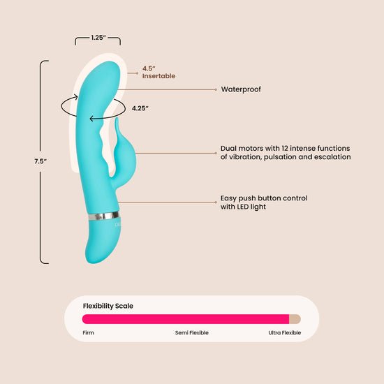 Enjoy unlimited tantalizing pleasure with the power-packed Foreplay Frenzy Bunny stimulator. The erotically contoured vibe is contoured for ultimate comfort, extended reach and flexible movement with your body, and features a curved, pleasure ripples and a dolphin shaped clitoral teaser.. Dual motors power up 12 functions for an unforgettable orgasmic experience every time.