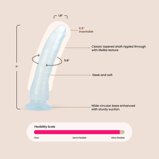 This dildo has a slim, friendly shape that's slightly curved for better G-spot stimulation and potential anal exploration!