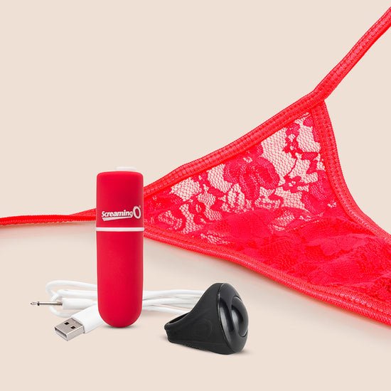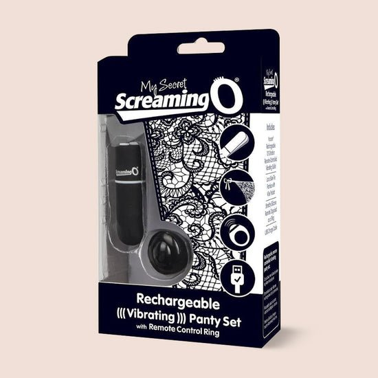 Play in public with the My Secret rechargeable remote vibrating panty, which comes with a waterproof 10-function rechargeable Vooom® bullet that fits discreetly into the side-tie lace underwear. The My Secret panty from Screaming O features a secret pocket that keeps deep, rumbling vibration right where you want it and fits up to 60-inch waists for a comfortable feel. The discreet push-button remote ring works up to 50 feet away and is made of soft-and-stretchy True Silicone® for easy wear on almost any size finger. The bullet vibrator, which works with or without the ring, lasts for more than 60 minutes on a single charge and is supported by a 2-year limited warranty. Whether for a tickling tease or some sex-life spice, the My Secret panty inspires connection with a splash of mischief and takes lacey lingerie to a new level.