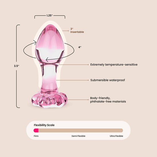 Borosilicate glass is wonderfully temperature-sensitive and will warm naturally to match your body heat. Experiment with pre-chilling or pre-heating for new and exciting sensations!