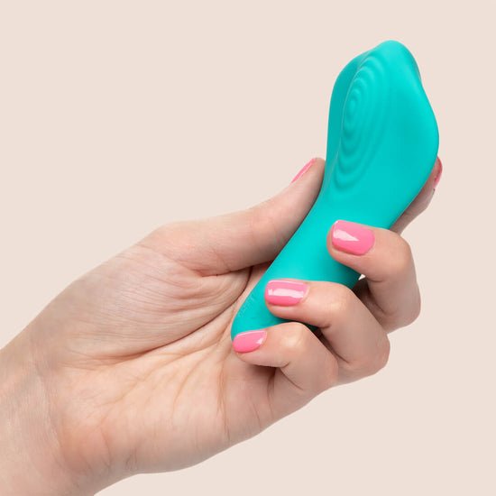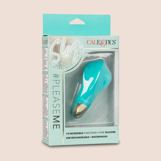 Slip the tickling Slay™ Pleaser into your purse or handbag for knee-shaking pleasure wherever you go. The sensually contoured massager fits between your fingers to let you deliver pinpoint tantalization and thrill with flexible vibrations. Get playful while you flicker through 10 indulgent vibration, pulsation and escalation functions with the easy-touch control button. The ergoNomically curved toy can be used as a vivacious mini vibrator or discreet panty teaser for pleasure to go