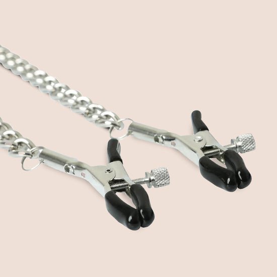 The two coated nipple clamps have tension adjustments and are attached to the collar with 10.5-inch chains.