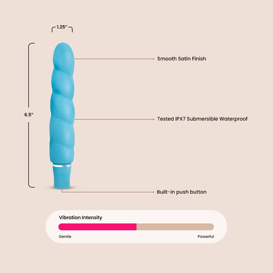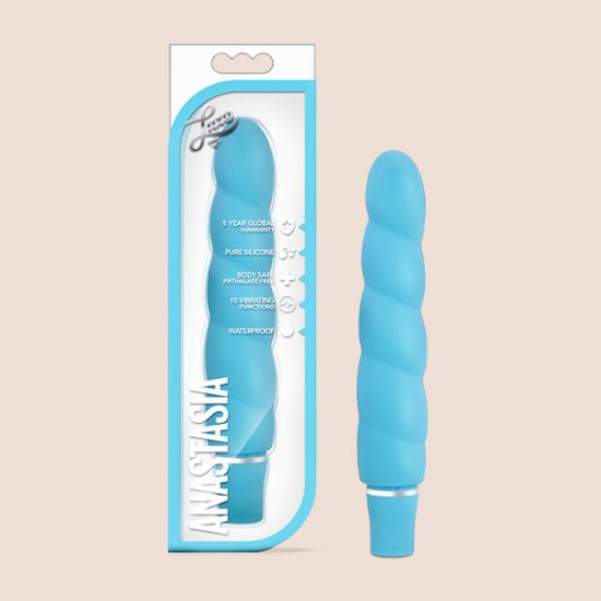 Anastasia’s seductive shape embodies the spirit of Blush Novelties’ Luxe Brand. Gorgeous to behold and sensuous to the touch with a smooth satin finish, Anastasia stands 6.5 inches with 5.5 inches of accessible play. Set in motion her 10 vibrating functions with a push of the button. Made of pure body safe silicone, the vibrations radiate freely over the spirals. Anastasia has a waterproof motor to ensure safe shower play. To clean Anastasia run water and apply a mild soap or wipe with a choice toy cleaner, then let air dry. Requires 1 AA battery, sold separately. Enjoy peace of mind with our 5 year warranty!