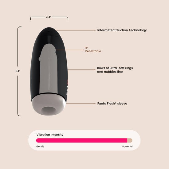The PDX Elite Fap-O-Matic elevates masturbation with powerful intermittent suction for the ultimate stroker experience. It's a perfect storm of sensation for heightened solo sex sessions that can be customized to your personal moods! Get ready for explosive hands-free thrusting surrounding your penis with ultra soft automatic stroking action! Your ultimate masturbation experience is ready when you are!