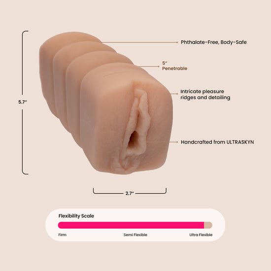 The Ashton Moore Pocket Pussy has a grippy textured exterior for precise control and pressure, while inside it is gently ribbed for exquisite sensations.