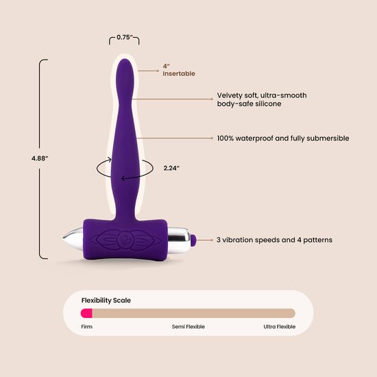Streamlined to perfection and designed to tantalize, Rocks Off Teazer 7 Speed Vibrator is an ideal toy for beginner's anal play or a cheeky stimulator for the more experienced. Feel each pleasure vibration as it travels from the unique t-shaped base to the very tip as its tickles and stimulates your secret sweet spot!
