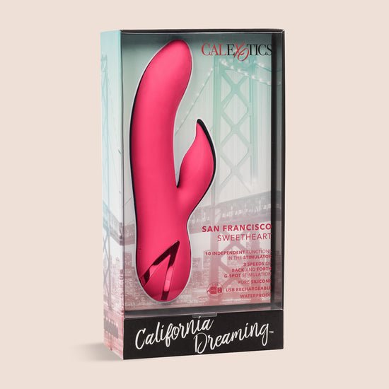 Dive deep into pools of pleasure and sun-kissed fantasies with the playful California Dreaming™ San Francisco Sweetheart. The luxurious vibrating massager has 10 intense vibration functions and 3 back-and-forth G-spot massager speeds for one-of-a-kind pleasure experience. The seamless silicone body and flickering teaser put out knee-shaking stimulation in and out of the water.